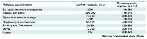 Значения арендных ставок для якорных арендаторов в настоящее время варьируется от 100 до 220 евро/кв. м в год (здесь и далее арендные ставки указаны без учета НДС и эксплуатационных платежей) в зависимости от размера, профиля помещения и других критериев. Договора аренды с якорными арендаторами заключаются на срок от 10 лет и более. Наиболее высокие арендные ставки устанавливаются при аренде малых помещений площадью менее 50 кв. м, в наиболее успешных торговых центрах, а также на первых этажах комплексов – 900-1500 евро/кв. м в год.