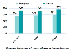 Динамика средней заработной платы в Республике Беларусь и г.Минске во 2 квартале 2013г., долл. США![]() |