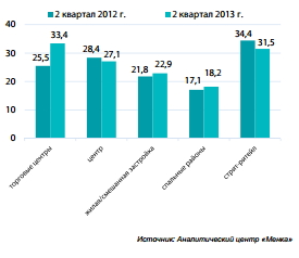 - Объем ввода в эксплуатацию качественных торговых площадей в 2013 г., по оценке, превысит аналогичный показатель 2012 г. Собственники действующих ТЦ будут вынуждены проводить более активную политику повышения эффективности своих объектов в связи с увеличением конкуренции на рынке.