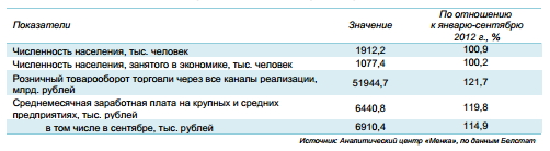 Показатели социально – экономического развития г.Минска в январе-сентябре 2013 г.