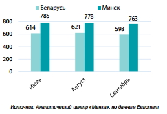 Динамика средней заработной платы в Республике Беларусь и г.Минске в 3 квартале 2013г., долл. США![]() |
